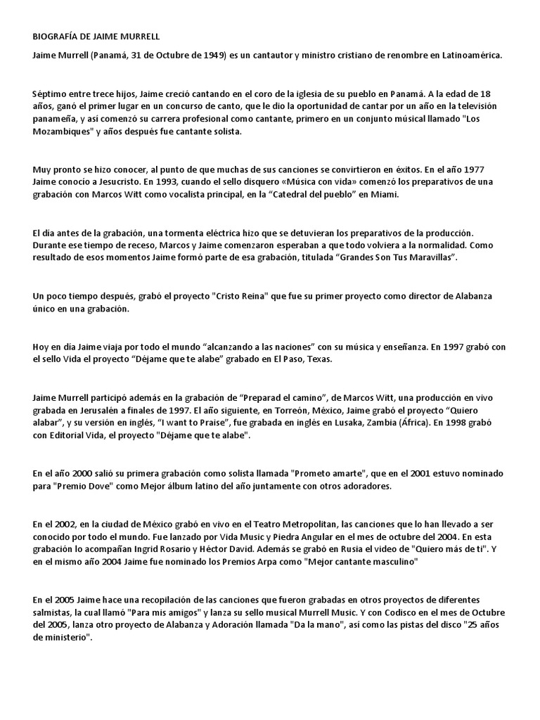 Jaime Murrell Canciones / ▷ jaime murrell discografia completa, ✅ canciones cristianas de jaime murrell en cancionesde.xyz | escucha musica online gratis. Jaime Murrell Canciones : Aprende a tocar las canciones de jaime murrell con tusacordes.com.