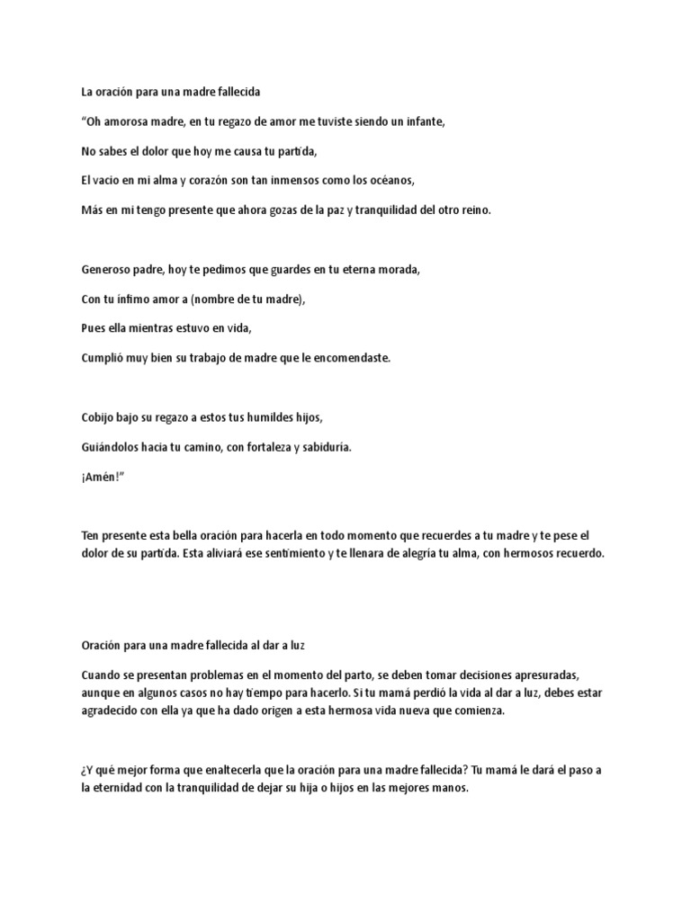 Oracion Para Una Madre Difunta Senor Ten Piedad - Y cuando cansada este, se acueste todos los dias.