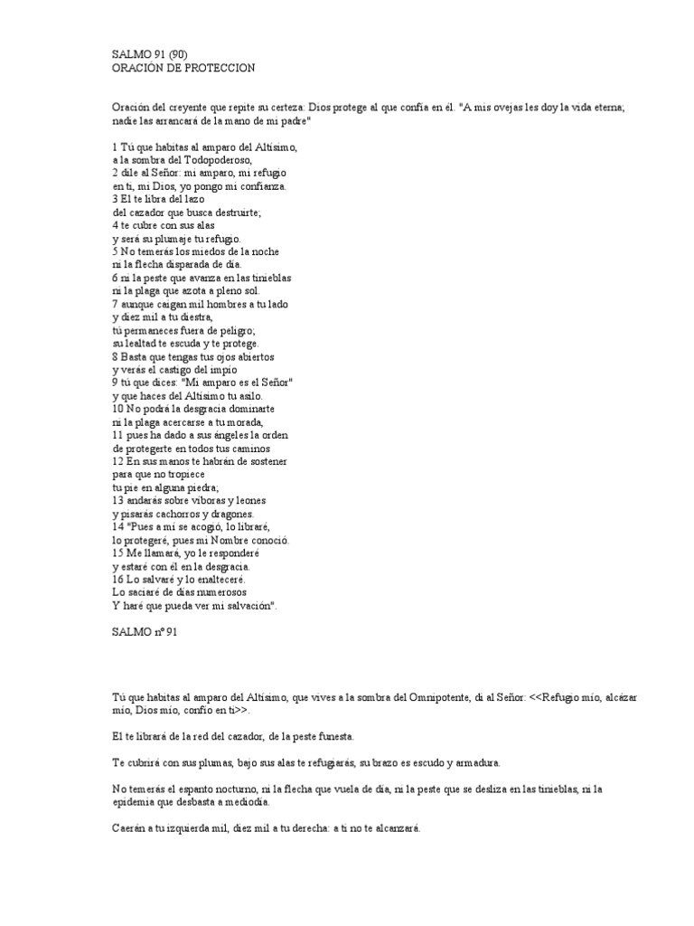 Conoce Las Oraciones De Proteccion Al Salmo 91 - Salmo 91 en forma de oracion.